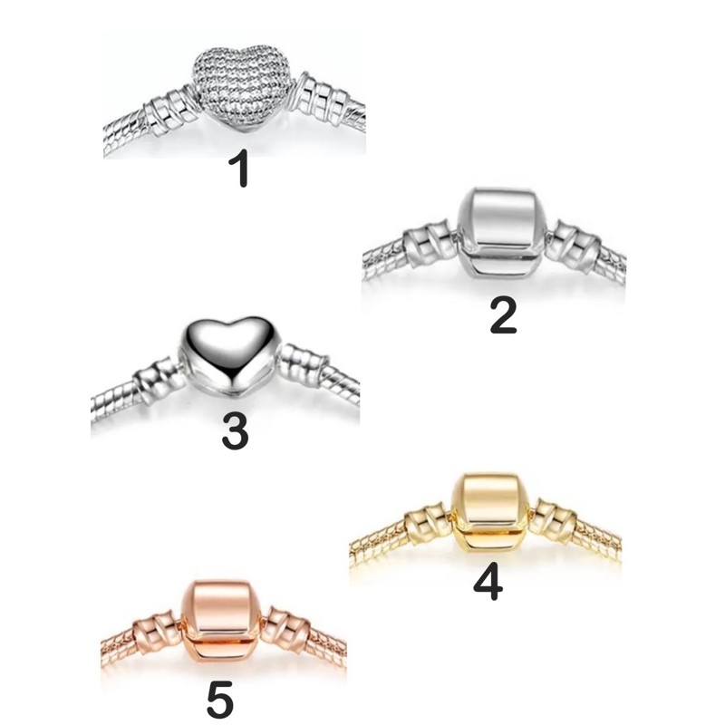 Pulseira para berloques fecho coração trava coração estilo pandora vivara life charm/ bracelete feminina