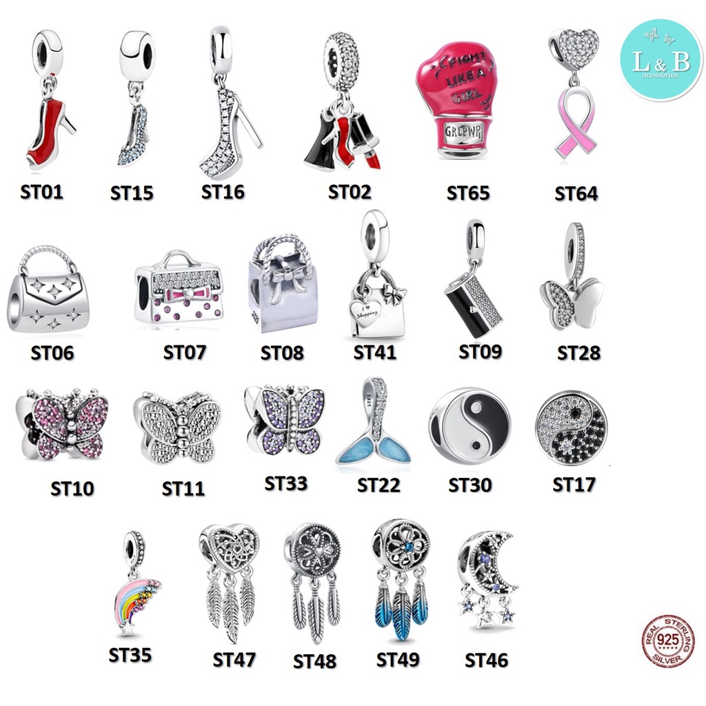 Berloques STYLE I em 100% Prata S925 para pulseiras modelo Pandora ou Vivara