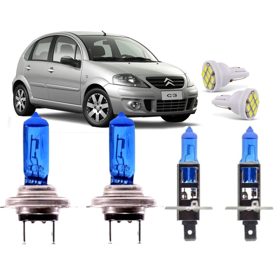 Kit Lâmpadas Super Branca Citroën C3 2003 2004 2005 2006 2007 2008 2009 2010 2011 2012 2013 2014 2015 2016 2017 2018