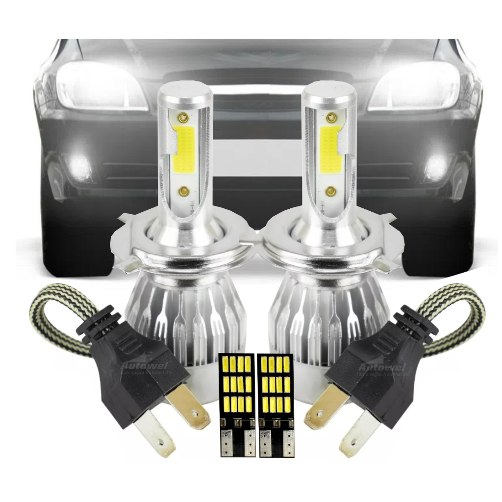 Kit Lampada Super Branca Palio 98 99 2000 2001 2002 2003 2004 2005 2006 2007 2008 2009 2010 Farol Alto Baixo e Lanterna Foco Duplo H1 H7 T10