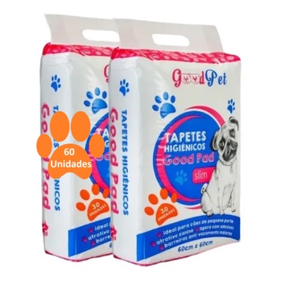 Kit 2 Pacotes Tapete Higienico Good Pad P/ Cães E Gatos 80x60 cm Com 60 Unidades Total Higiênico 30 Em Cada Pacote