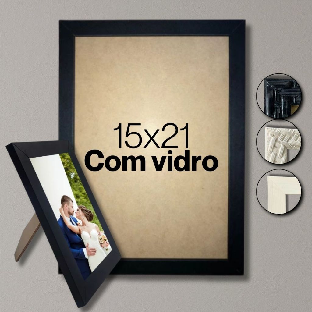 Porta Retrato De Mesa 15x21 Kit 1, 3, 6 Moldura Com Vidro P/ Fotos Quadro Suporte Gravata