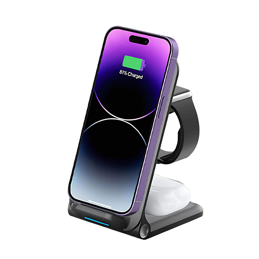 Kit Carregador Sem Fio 3 Em 1 Suporte Celular Indução Turbo Iphone Air Pods Apple Watch