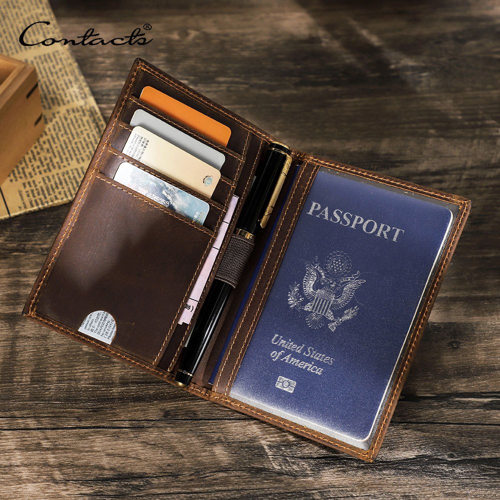 Porta-Passaporte CONTACT'S Masculino Couro Genuíno Mini Carteira Cartões Para De Viagem
