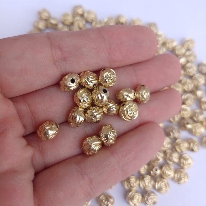 30 Passantes Flor de Metal para Terço e Pulseiras Dourado - Passante Florzinha para Pulseiras