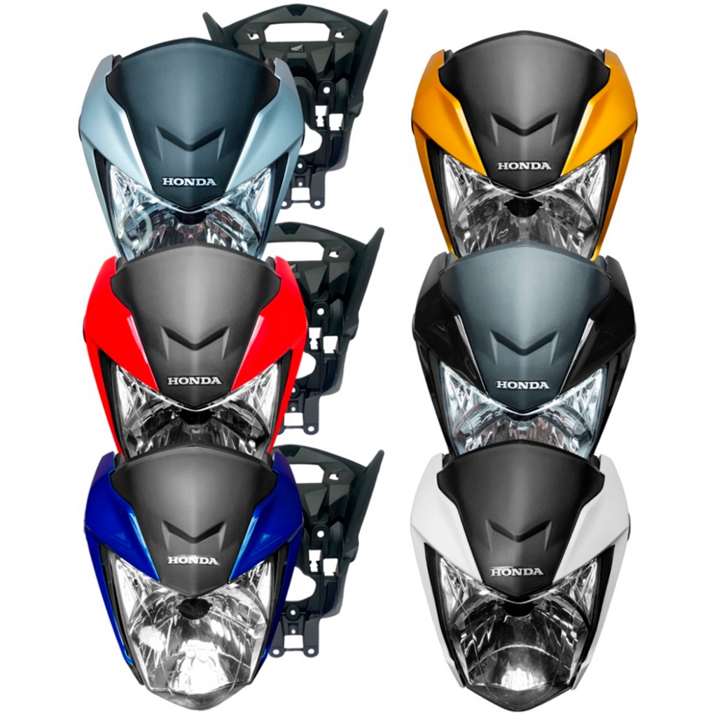 Frente Farol Com Bloco Lente Honda Titan 150 160 Aranha Bananinha 2016 a 2023 Kit Parafusos Instalação Vermelho Azul Prata Cinza Branco