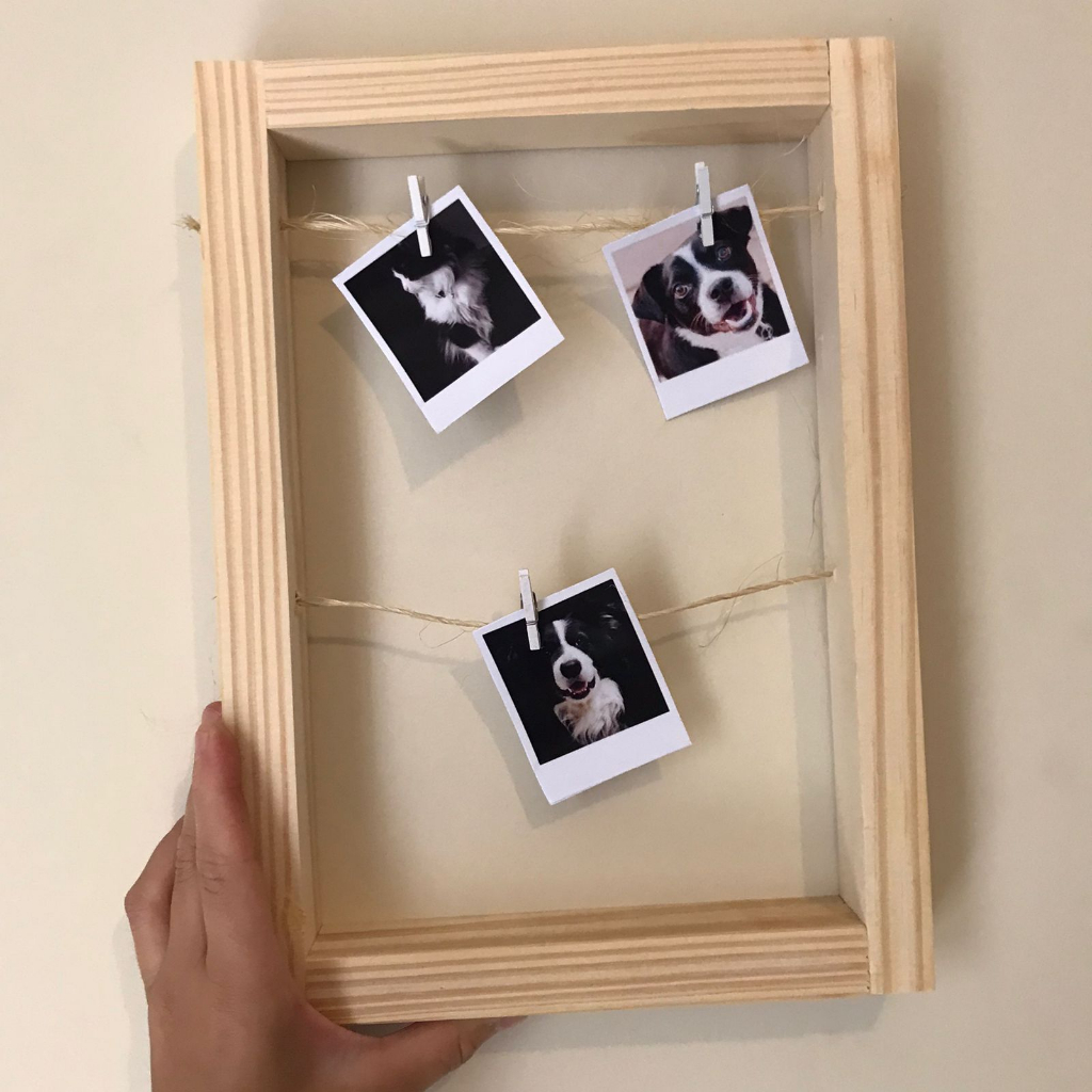 Porta retrato polaroid com sporta fotos Quadro sisal varal vazado madeira pregador decoração de mesa dia dos namorados/quarto/sala/escritorio/presentes/dia das mãe moldura artesanato
