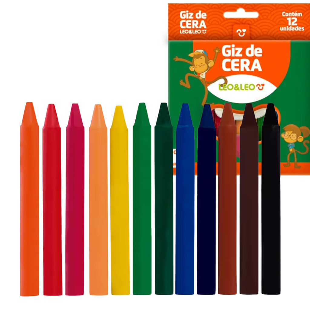 Kit Giz de cera 12 cores Leoleo material escolar atacado