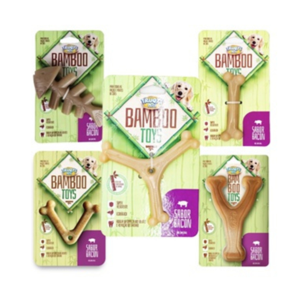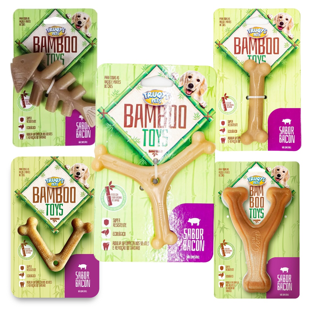 Kit Bamboo Toys Sabor Bacon Truqys Brinquedo Mordedor Osso Bamboo Toys Tam Pequeno I, V e Y