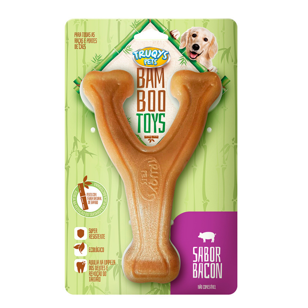 Brinquedo Osso Bamboo Mordedor Para Cães Sabor Bacon Truqys Pet Forquilha