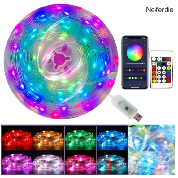Fita Led Luz pisca pisca Rgb Bluetooth app Controla Pelo Celular Usb Para Tv Pc 5 Metros Colorida Prova D'agua + Controle 11