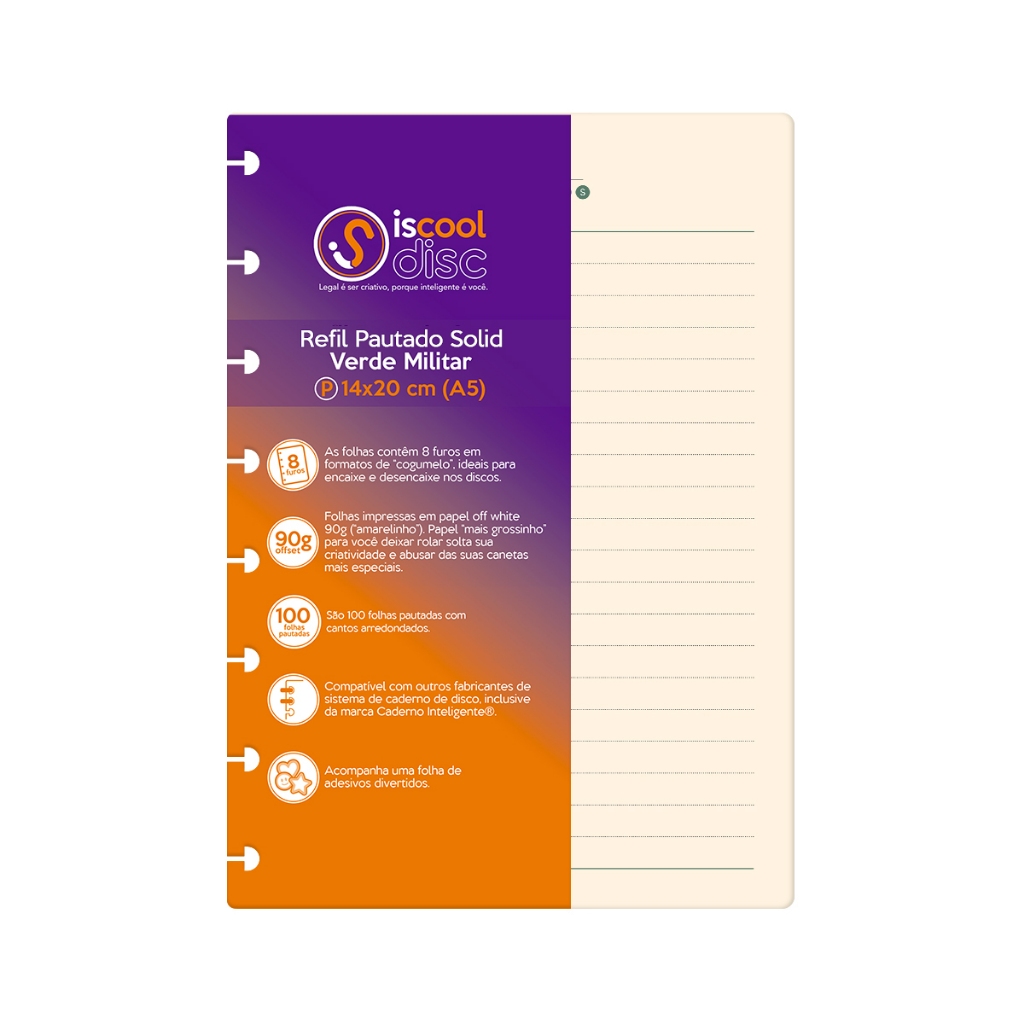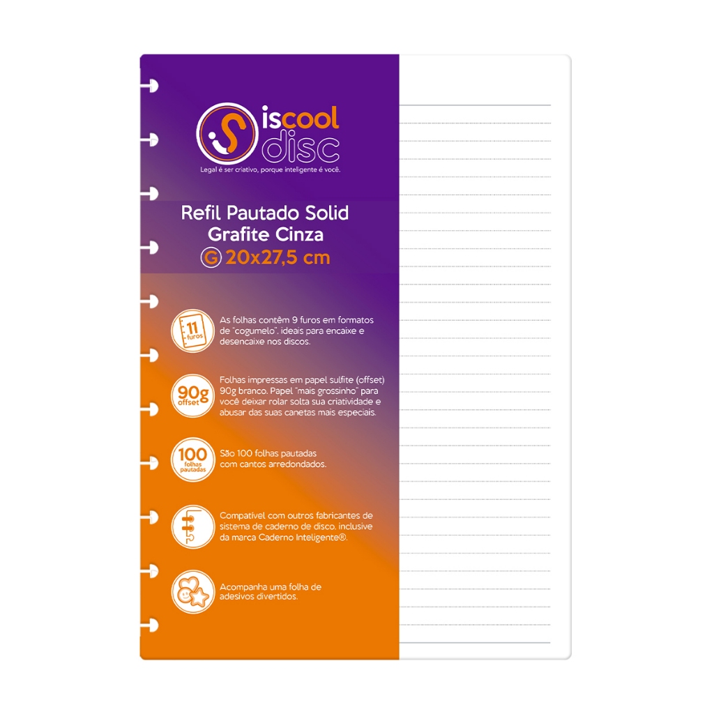 Refil Caderno De Disco IsCool Pautado Teen Inteligente 90g 100 Folhas