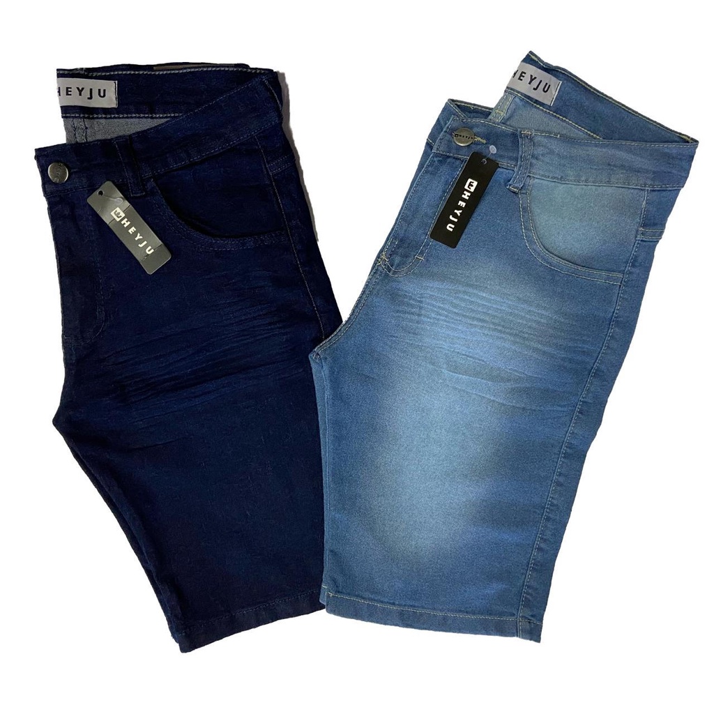 Kit 2 Bermudas Jeans Masculina Lycra Elastano