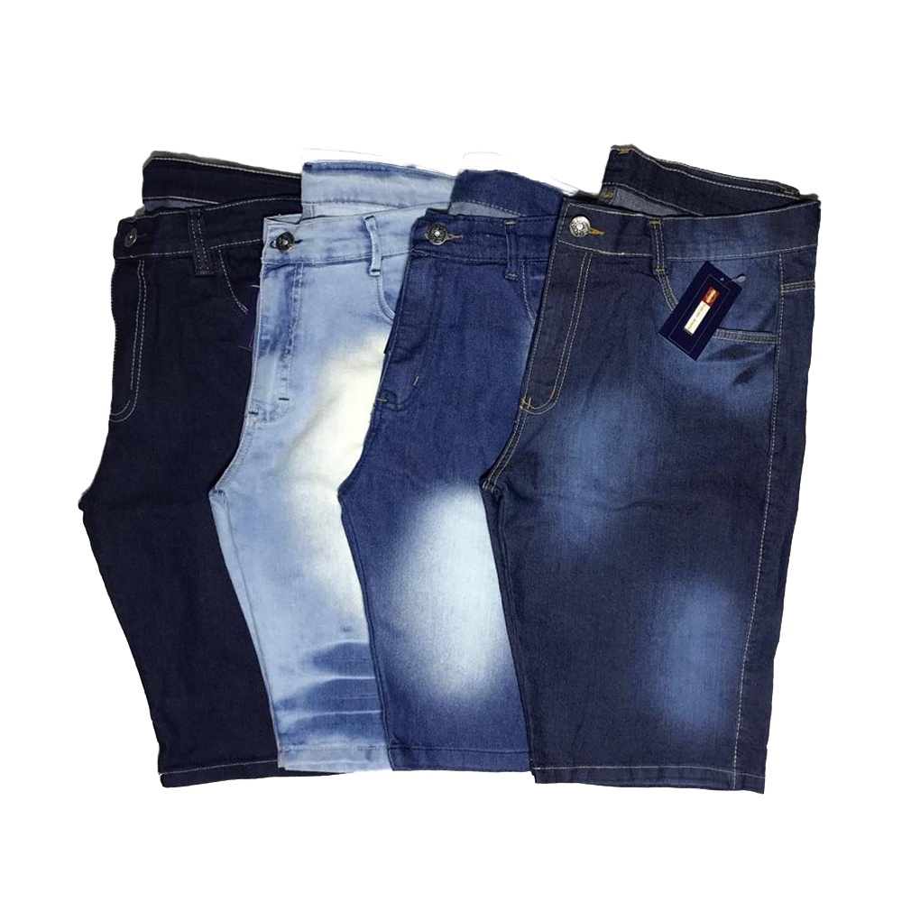 Kit 3 Bermudas Jeans Masculina, Branca, Azul, Preta Elastano sem Lycra