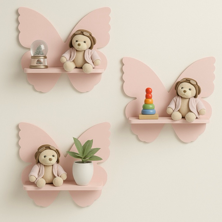 Kit Prateleira Borboleta Nicho Borboleta em MDF 3 peças