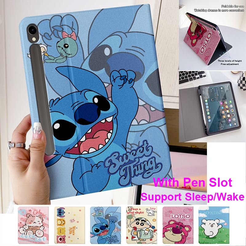 Para Samsung Galaxy Tab S9 FE Plus S9 + SM-X610 X616B X510 X516B X810 X816 X818 X710 X716 Capa Protetora De Mesa Com Ranhura Caneta Padrão De Desenho Animado