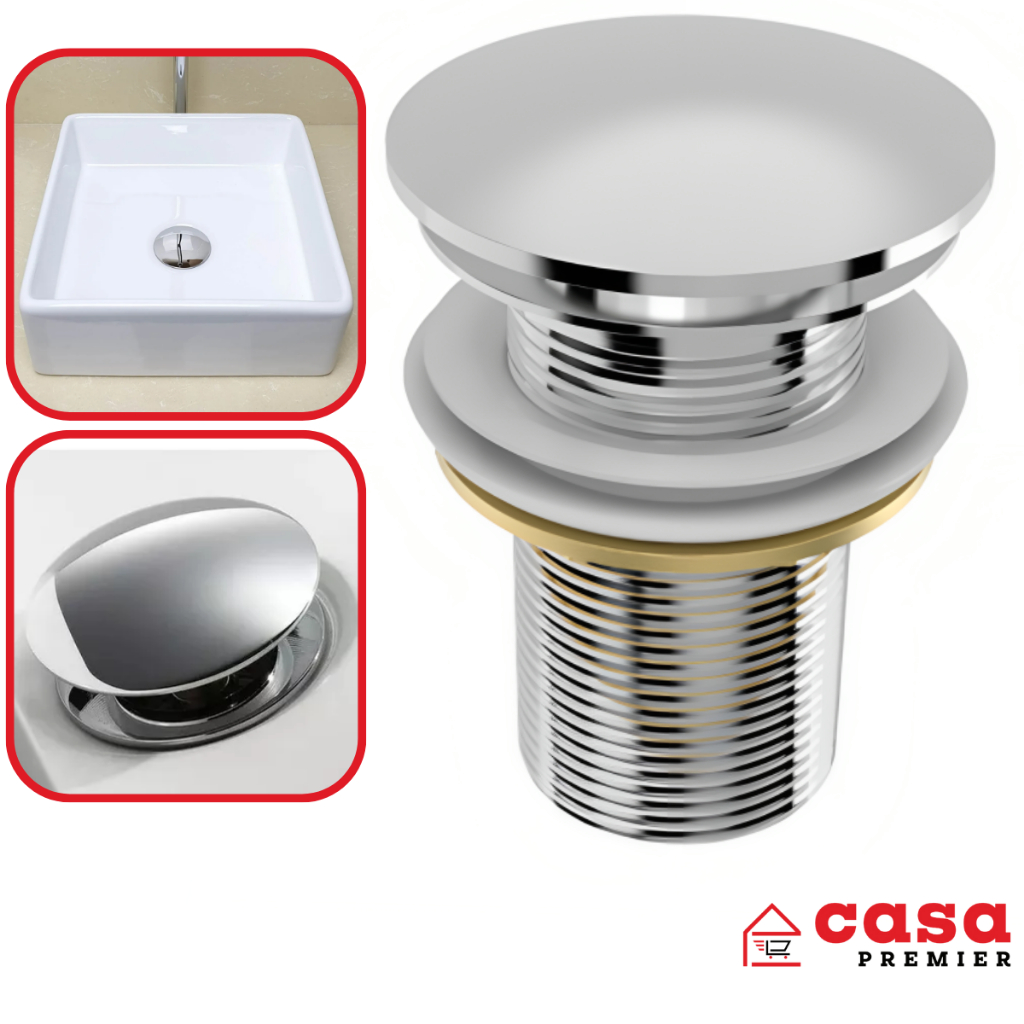 Válvula Click 100% em Metal Tampa em Inox Para Cubas Pia Vidro E Banheiro Louça 1" e 1/4