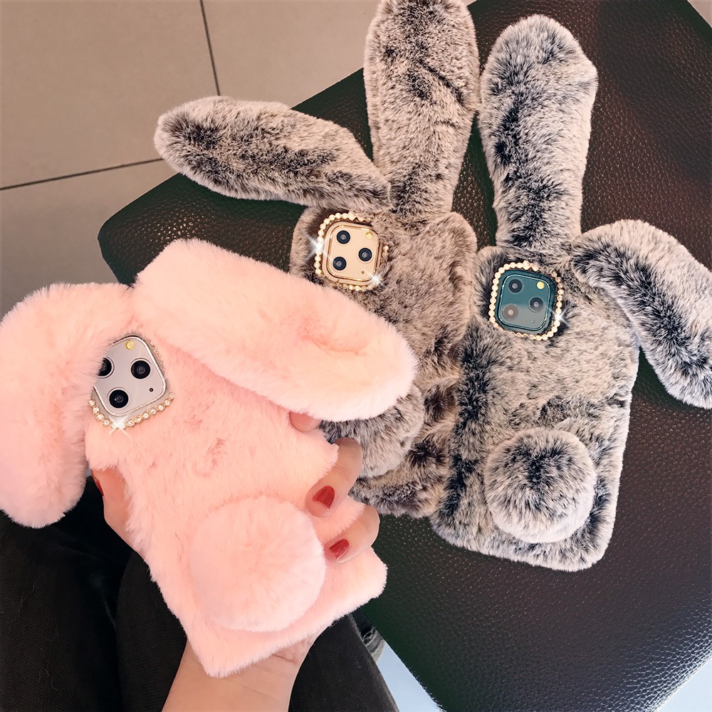 Capa De Celular De TPU Com Orelhas De Coelho Peludo/Pelo Para IPhone 13 pro max/13 mini 12 12/7/8 Plus/X/Xr/Xsmax/11/11Pro/11Promax