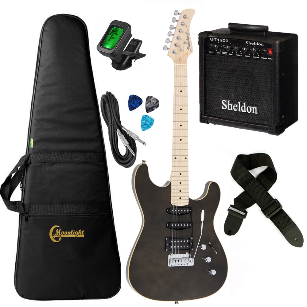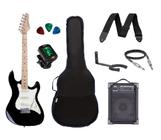 Kit Guitarra Strato Strinberg STS-100 com acessórios + amplificador PRETA