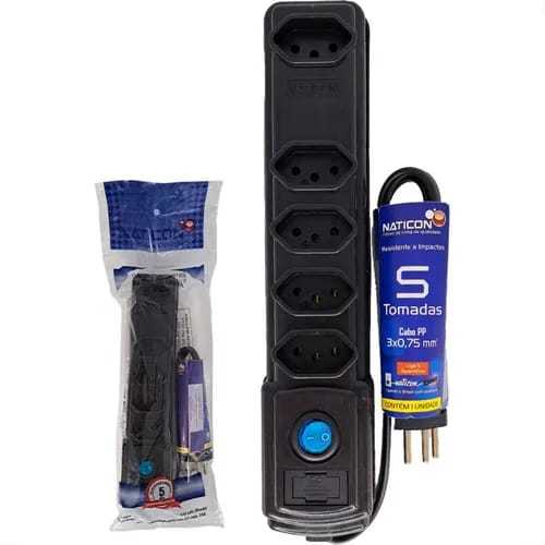 Filtro de Linha com Cabo PP 3, 4, 5 e 6 Tomadas 3 e 5 Metros bivolt Com Proteção Fusível Chave E Led