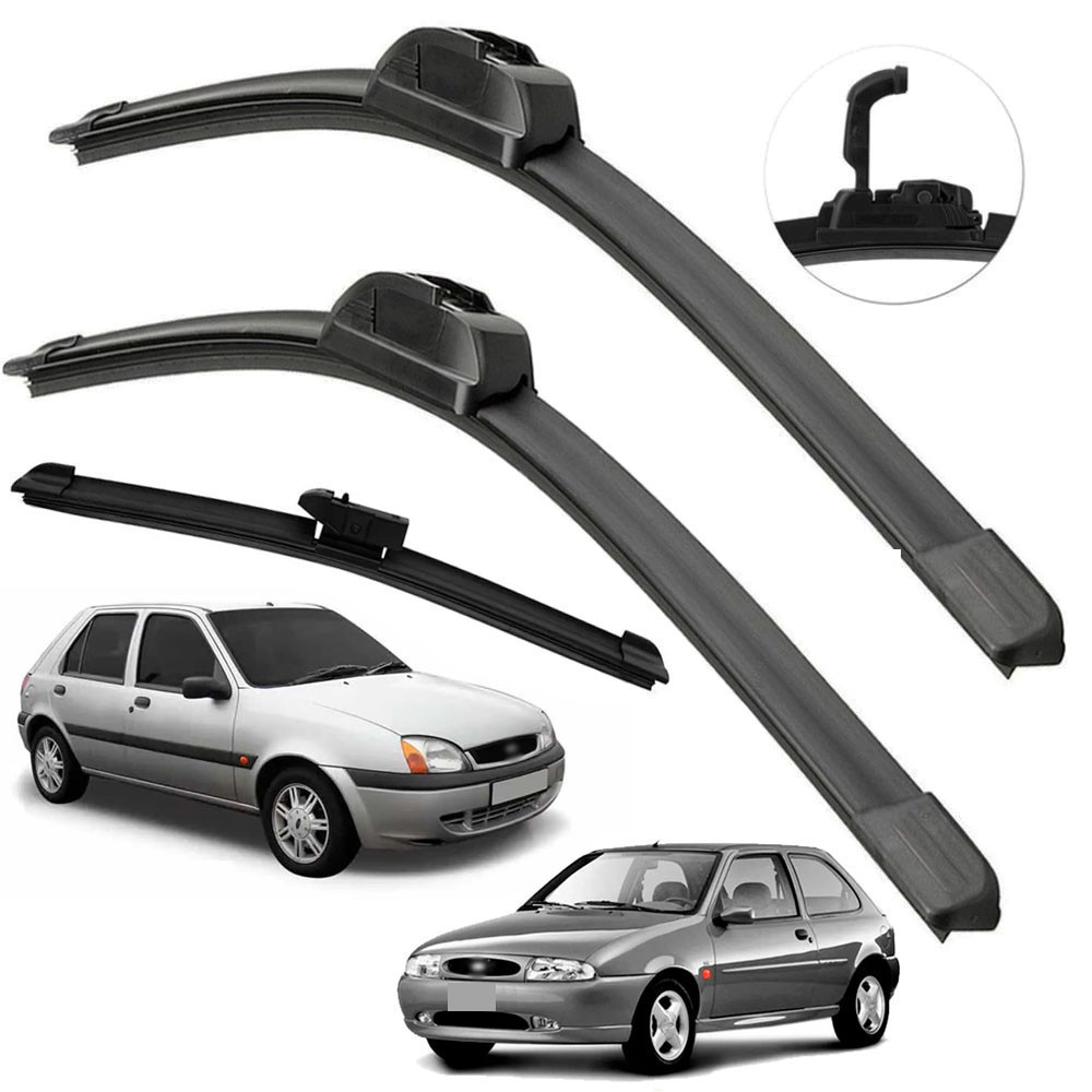 Kit 3 Palheta Parabrisa Dianteira e Traseira Fiesta 1996 até 2007 19p 19p 16e