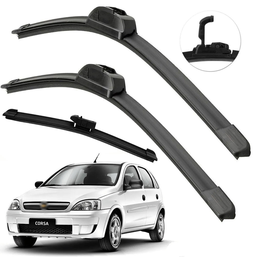 Kit 3 Palheta Parabrisa Dianteira e Traseira Corsa Hatch 2004 até 2012 20p 18p 15e