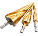 Kit Jogo 3 Brocas Escalonadas Titânio 4-12 4-20 3-12mm Espiral Hss Broca Escalonada