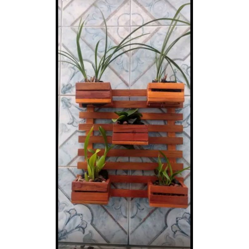 Painel de Madeira Floreira Modular Suporte Parede Suspenso Jardim Vertical Horta