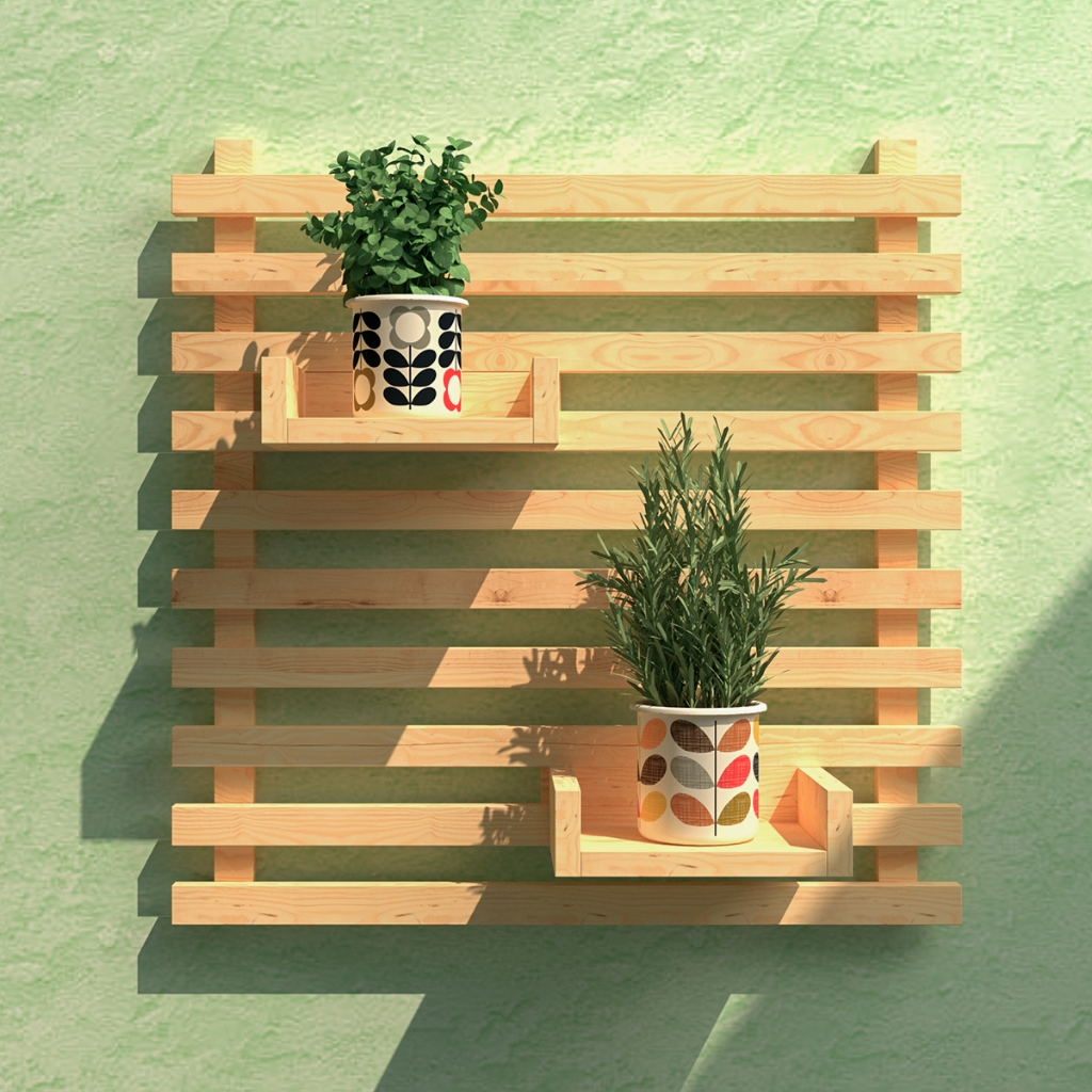 Floreira de Parede Estilo Painel Em Madeira Pinus Com Prateleira Suporte Para Vasos e Plantas Mini H