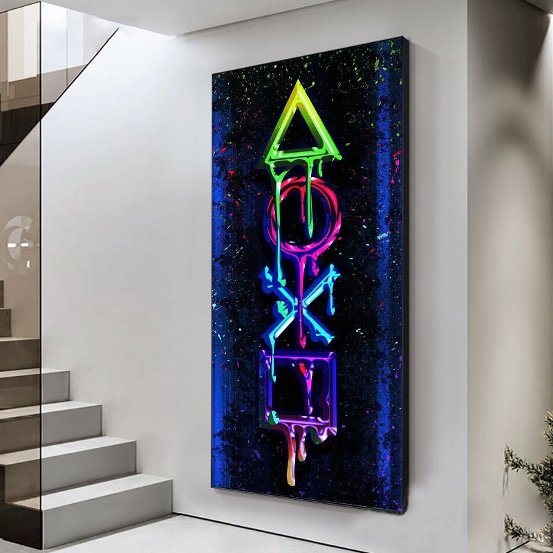Quadro decorativo 1 peça 40x60 Grafite colorido arte playstation gamer jogo para sala quarto