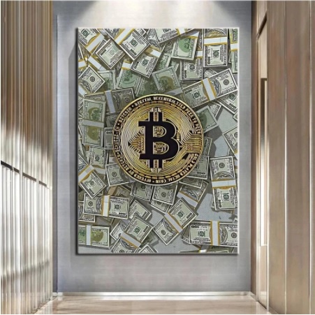 Quadro 1 Peça 40x60 Bitcoin pintura em tela dólar dinheiro arte da parede