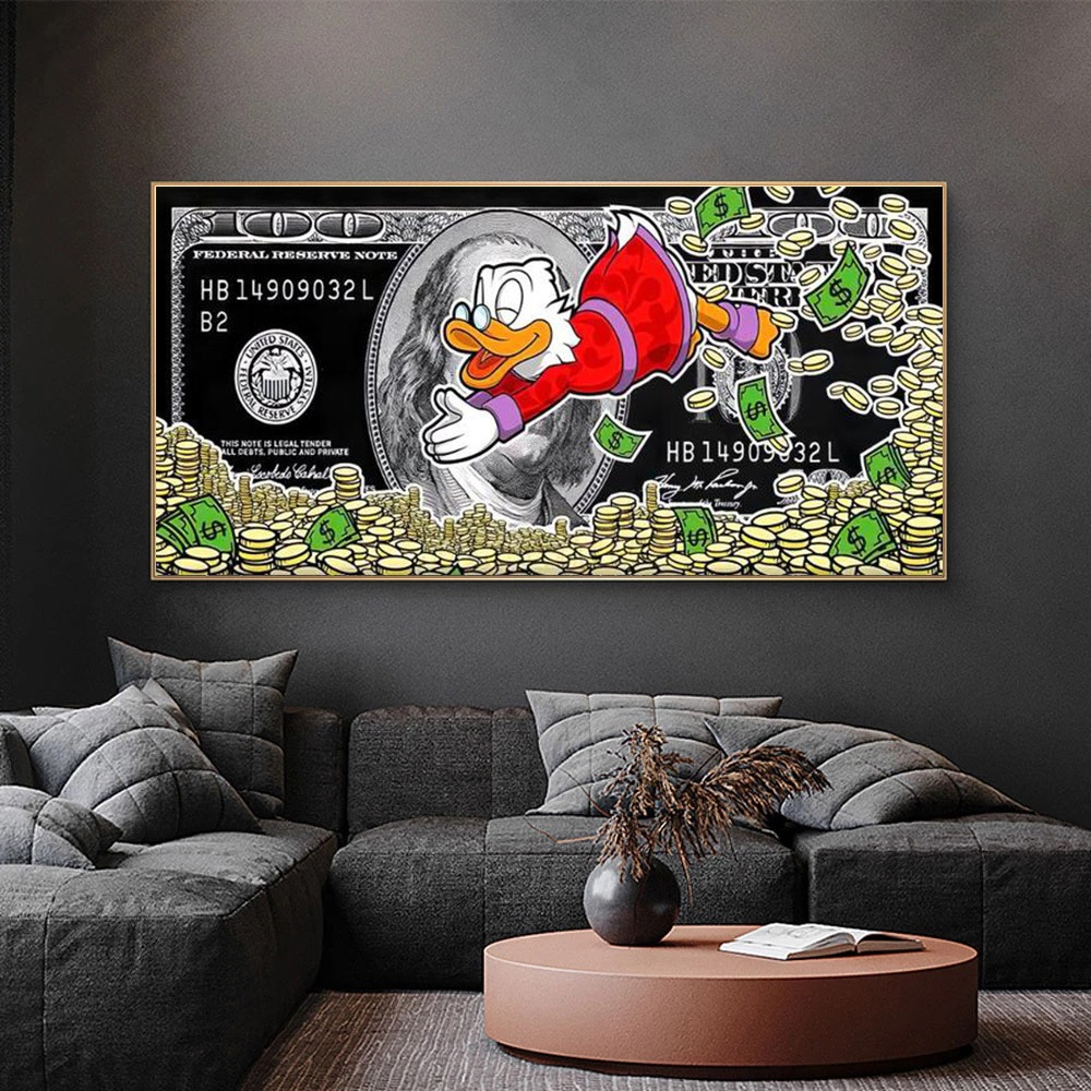 Quadro Decorativo 1 Peça 40x60 Abstrato Moderno Pato Donald Tio Patinhas Dinheiro Dólares Grafite Decoração Para Casa Sala Quarto Hall