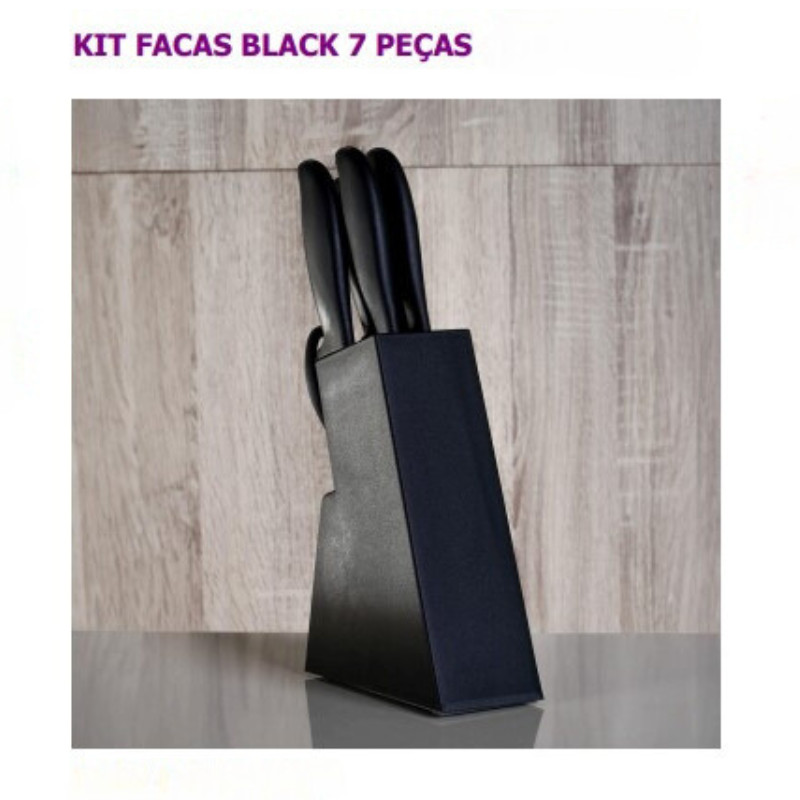 Kit Facas Black 7 Peças Bene Casa Churrasco Pão Suporte Cepo Faqueiro