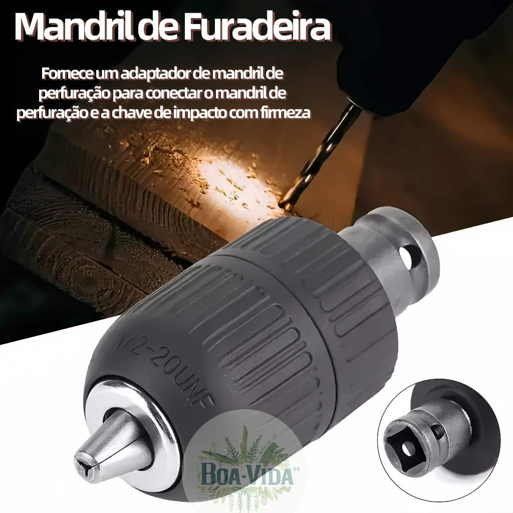 Mandril De Furação 1,5-13mm 1/2 "-20UNF Conversor Adaptador Para Chave De Impacto