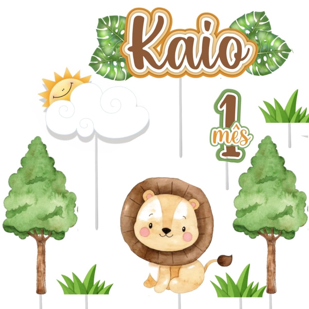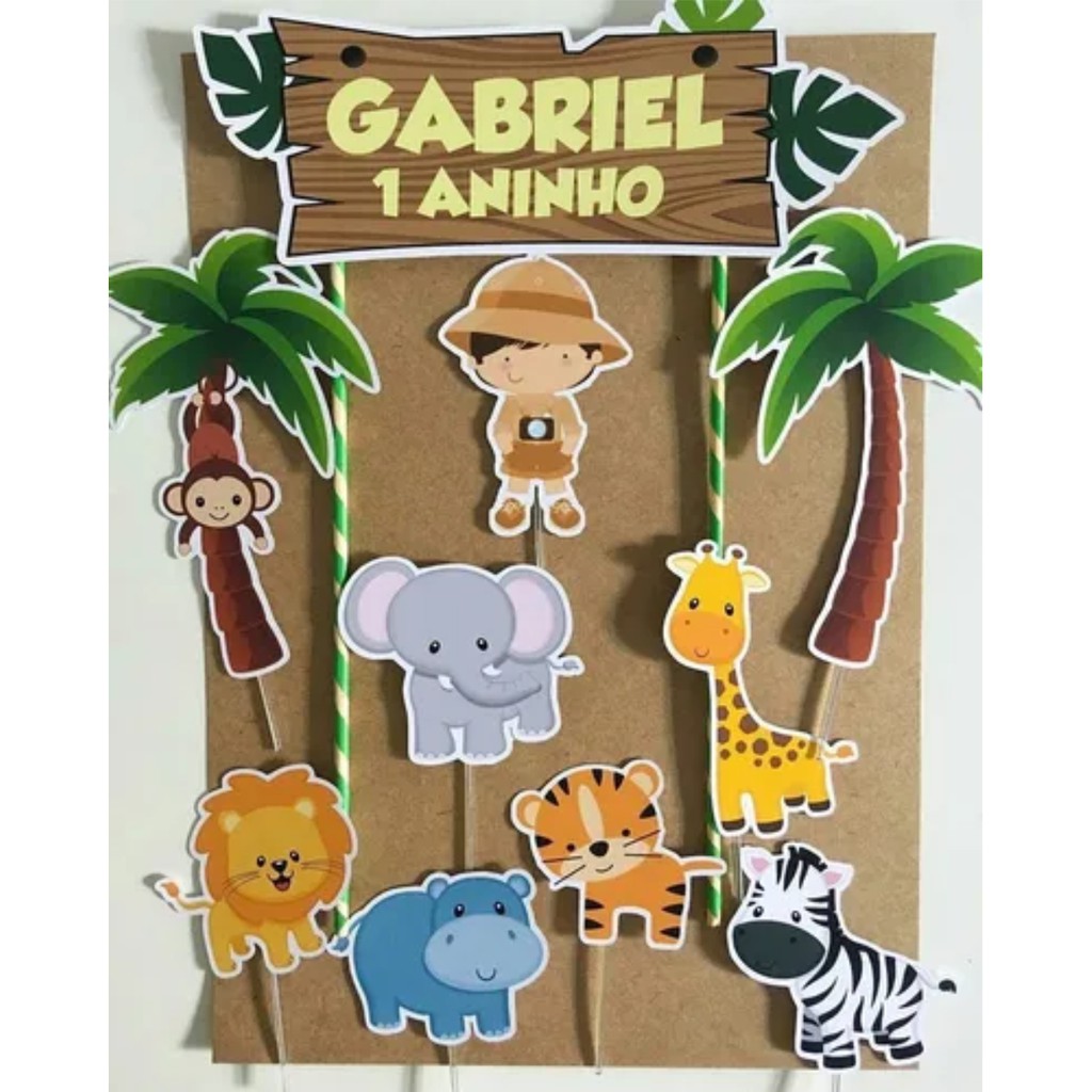 Topo Topper Decoração De Bolo Enfeite Animais Safari