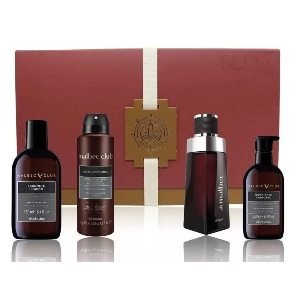 KIT Malbec Desafie-se - O Boticário - Perfume - Sabonete Líquido - Desodorante Corporal - Antitranspirante Aerossol