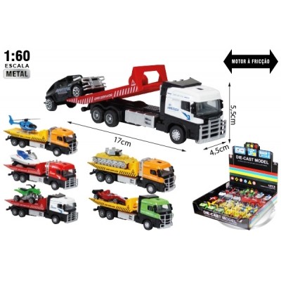 Miniatura Caminhão Guincho Grua Plataforma com veiculo 1:64