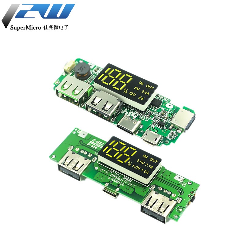 18650 LED Placa De Carregador De Bateria De Lítio Módulo De Carregamento De display digital 5v2.4a 2A Reforço De Banda De Saída USB Dupla 5V 2.4A Micro Tipo C Banco De Energia Móvel