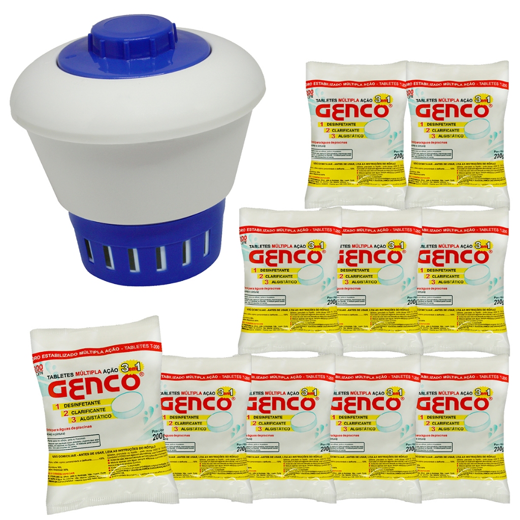 Kit 10 un Pastilhas de Cloro 3 em 1 Genco 200g Com Flutuador