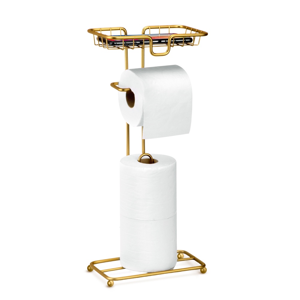 Porta Papel Higiênico De Chão Com Suporte Para Celular Dourado Fosco Arthi