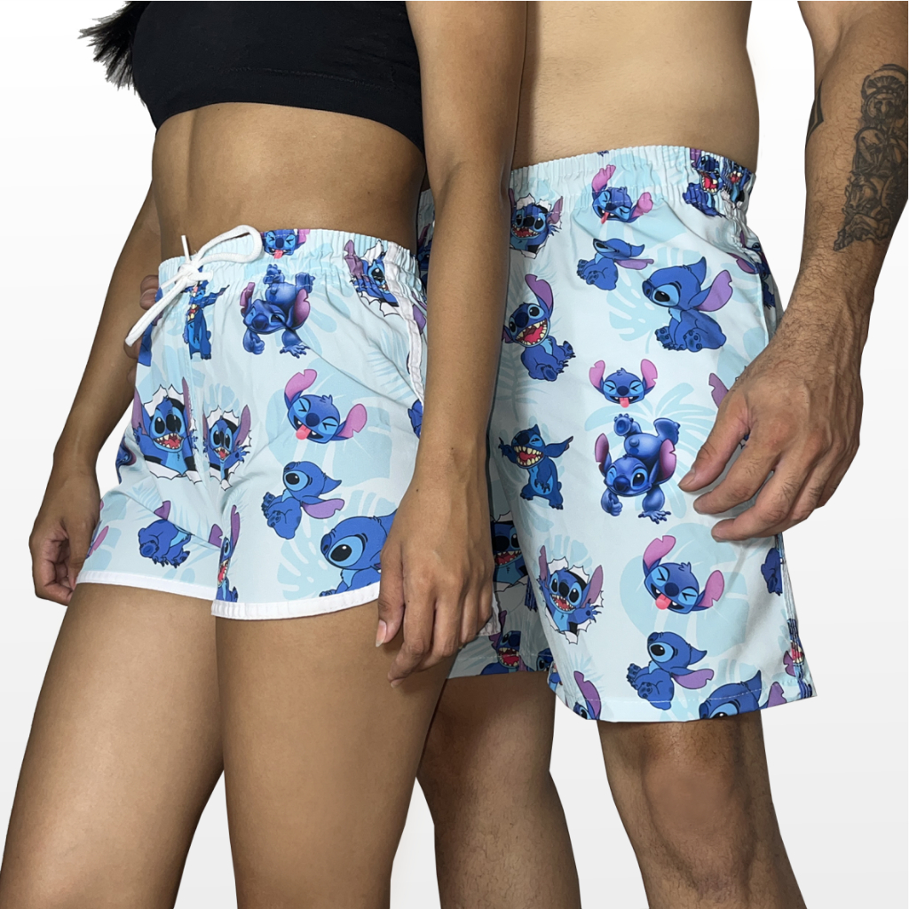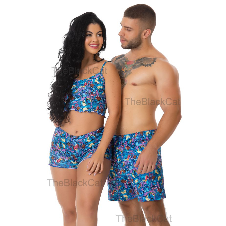 Kit Short Casal Stitch Luxo Conjunto Combinando Estampado Alta Qualidade