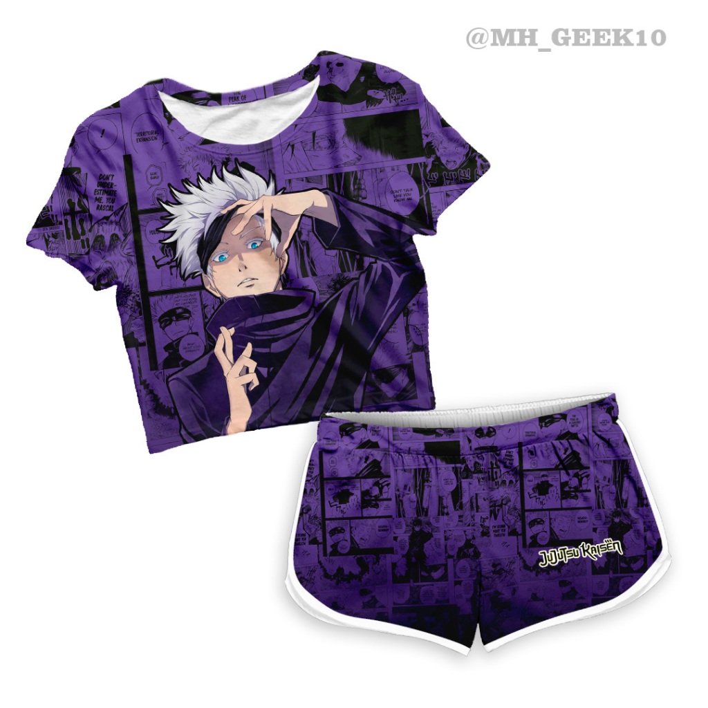Conjunto Kit Cropped e Short Feminino Jujutsu Kaisen Sukuna Itadori Goju Anime Manga