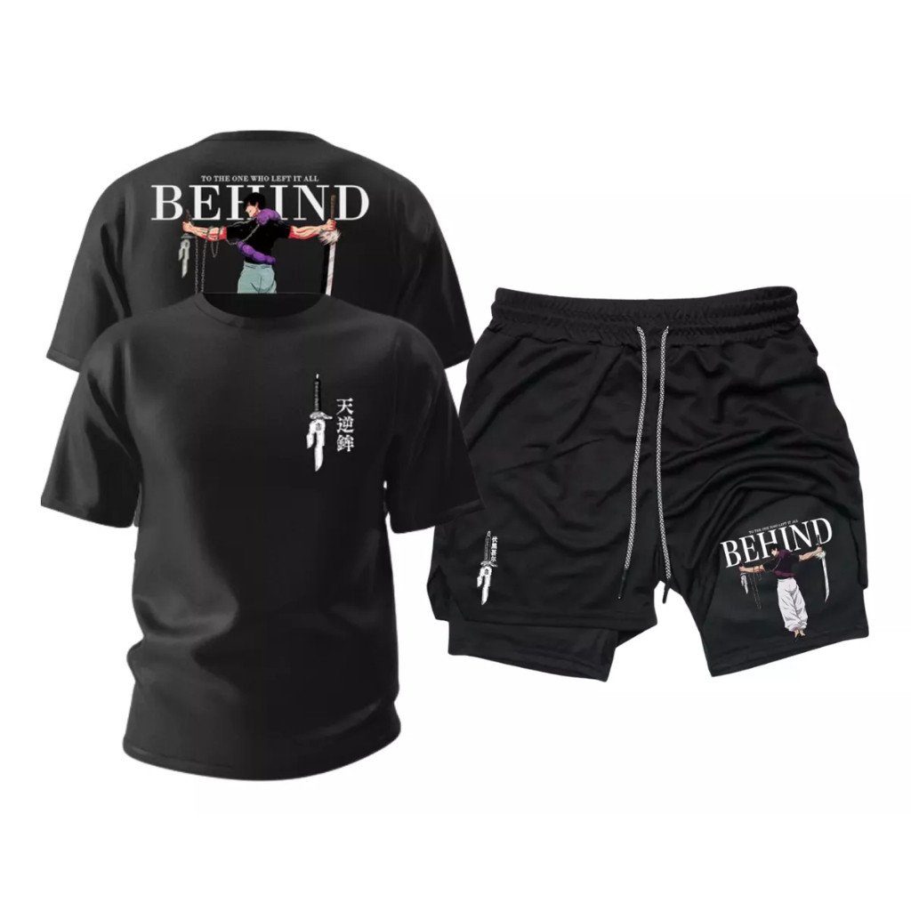 Kit Com Short Duplo Dry Fit e Camiseta de Algodão Toji Fushiguro Anime Jujutsu Kaisen