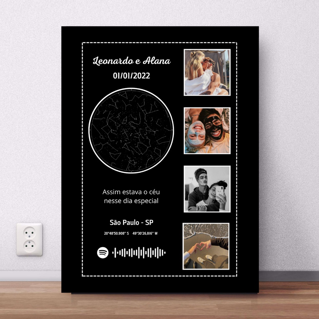 Quadro Placa Casal Céu Estrelado Constelação com Música Spotify - Dia Dos Namorados Presente com sua Foto Estrelas QR Code