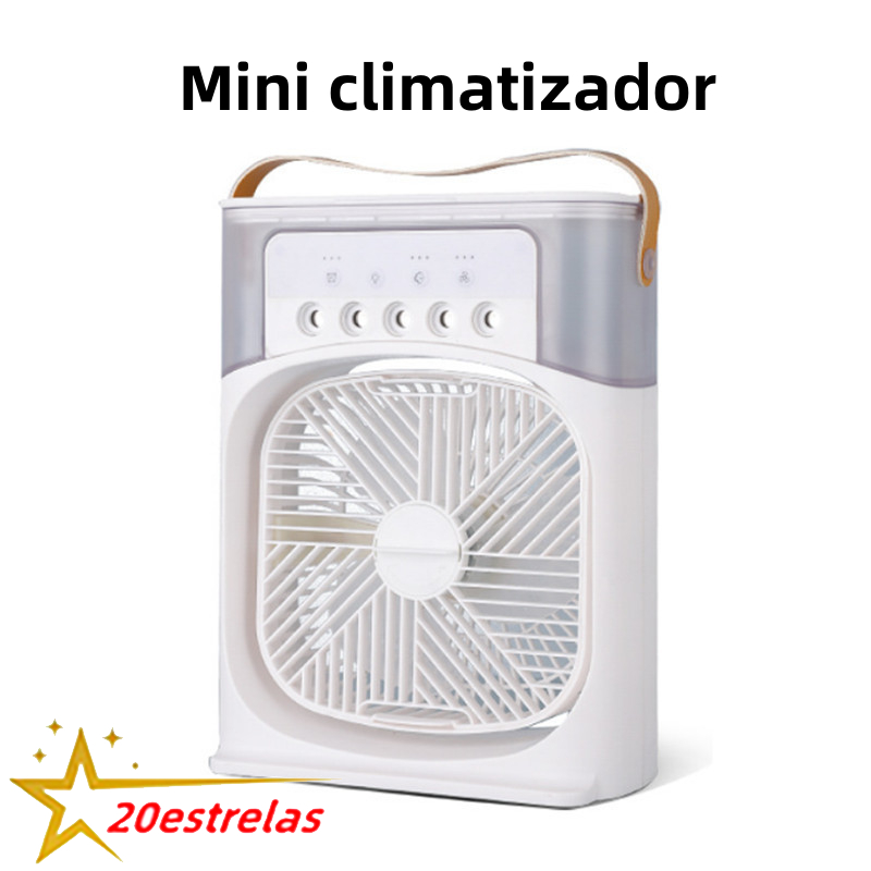 Mini Ventilador Umidificador Climatizador de Ar c/ Led e Reservatório 600mL Ar Condicionado para Água e Gelo Sala Quarto