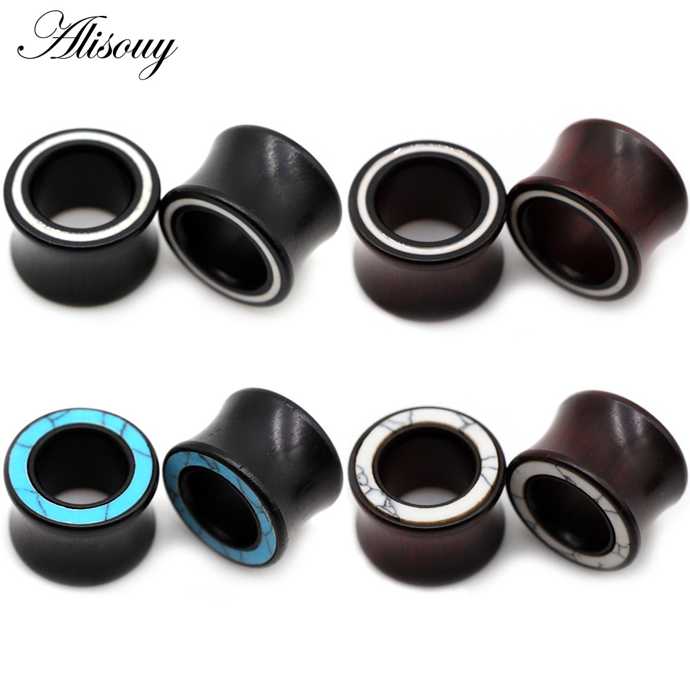 Alisouy 2pçs Tampões De Orelha De Madeira Flesh Túneis De Sela Medidores 8-25mm Sólidos Homens Ocos Mulheres Expansor Jóias De Perfuração Corporal