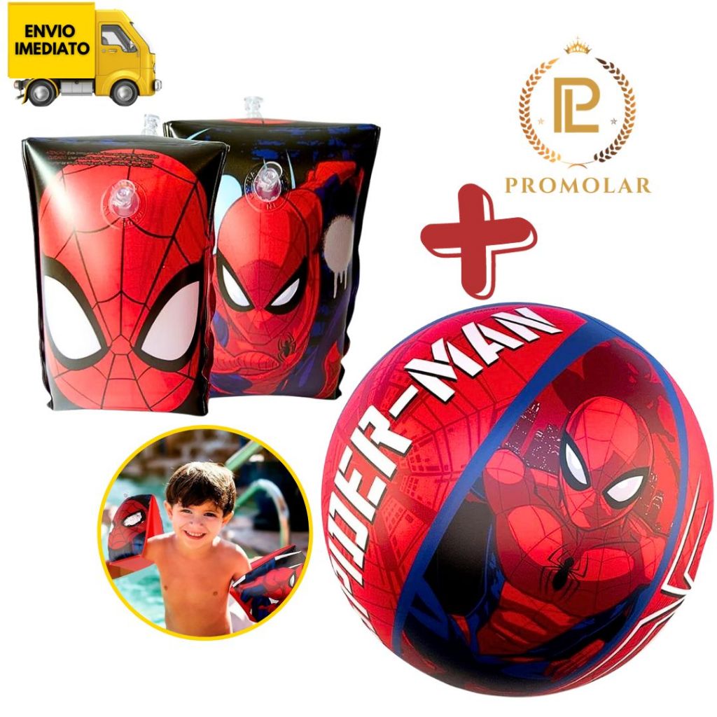 Kit Boia De Braço Infantil Para Meninos Homem Aranha Disney + Bola Inflável 40 Cm Infantil Para Crianças Brincar Piscina Proteção Para Nadar Spider Man