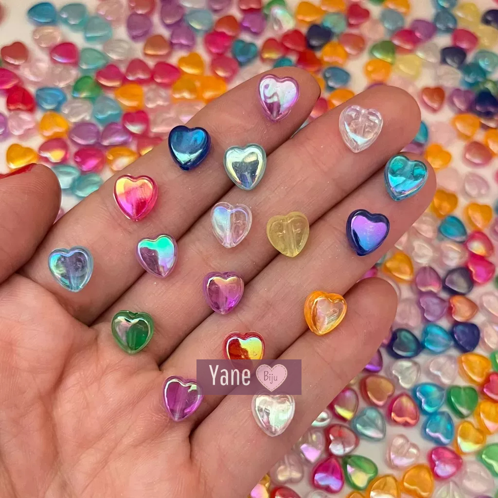 Miçanga CORAÇÃO irisado 8mm *Pacote com 40 UNIDADES Coloridos | para Artesanato (BA-03)
