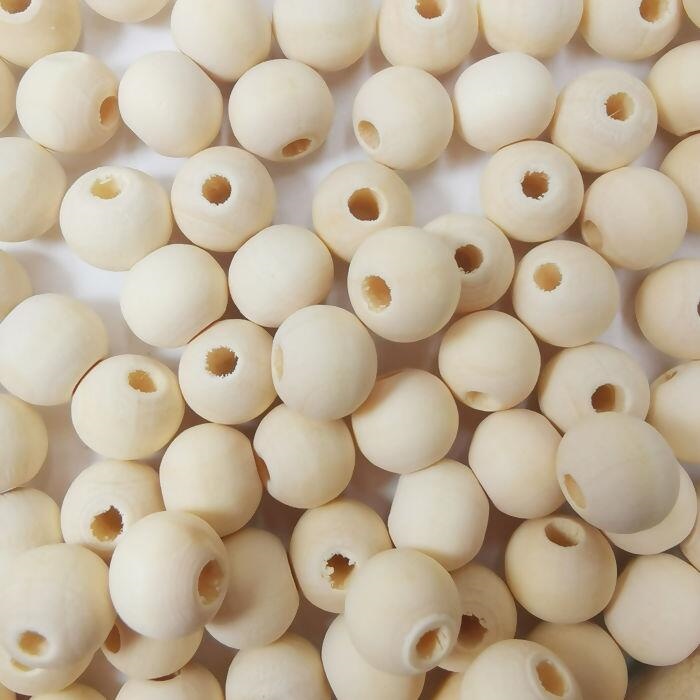 Miçanga de Madeira Bolinha - pacote com 100 unidades - Cru - RO.150621 [ 10mm ]