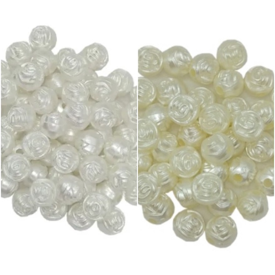Perola Flor Rosa com Furo Passante 10mm - Pacote com 30, 50 ou 100 unidades
